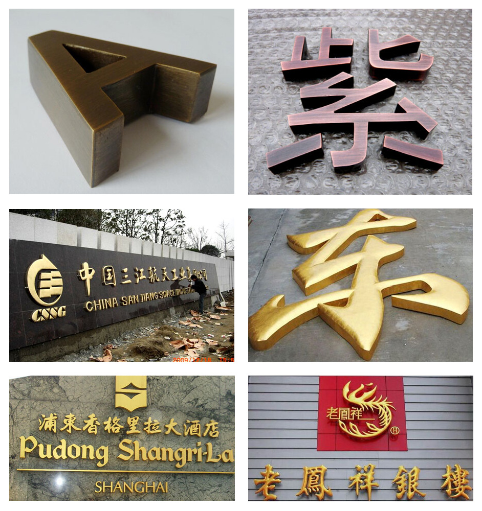 銅字具有壽命長(zhǎng)、不易被腐蝕和褪色等特點(diǎn)。因?yàn)閷儆诮饘?,它具備了金屬所有的?yōu)點(diǎn),例如易制作成型等。銅字還具備保存價(jià)值,因?yàn)殂~本身就屬于貴重金屬,僅次于金銀。銅也容易被氧化,即生成銅銹,我們通常見到銅錢上的綠色物質(zhì)就是銅銹,又名銅綠,化學(xué)式:Cu2(OH)2CO3。但這反而恰是銅字的優(yōu)點(diǎn),很多人認(rèn)為它是歷史的見證,視其為寶,像孔雀石的主要成分就是銅綠。當(dāng)然對(duì)于一些追求銅字美觀的人們來說,希望銅字干凈,不要有銅綠,這對(duì)廣告商來說不是難事。做下防氧化即可。